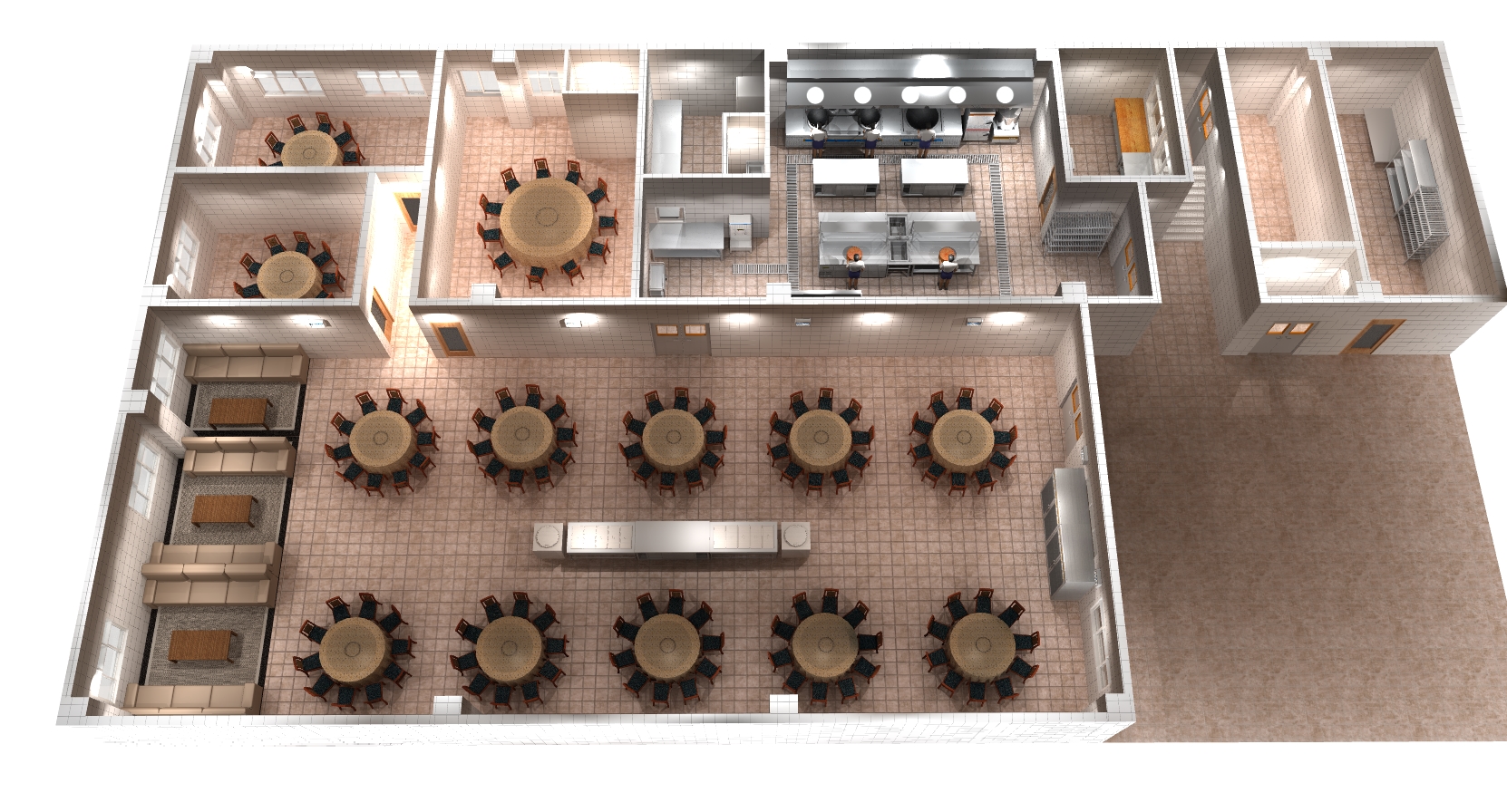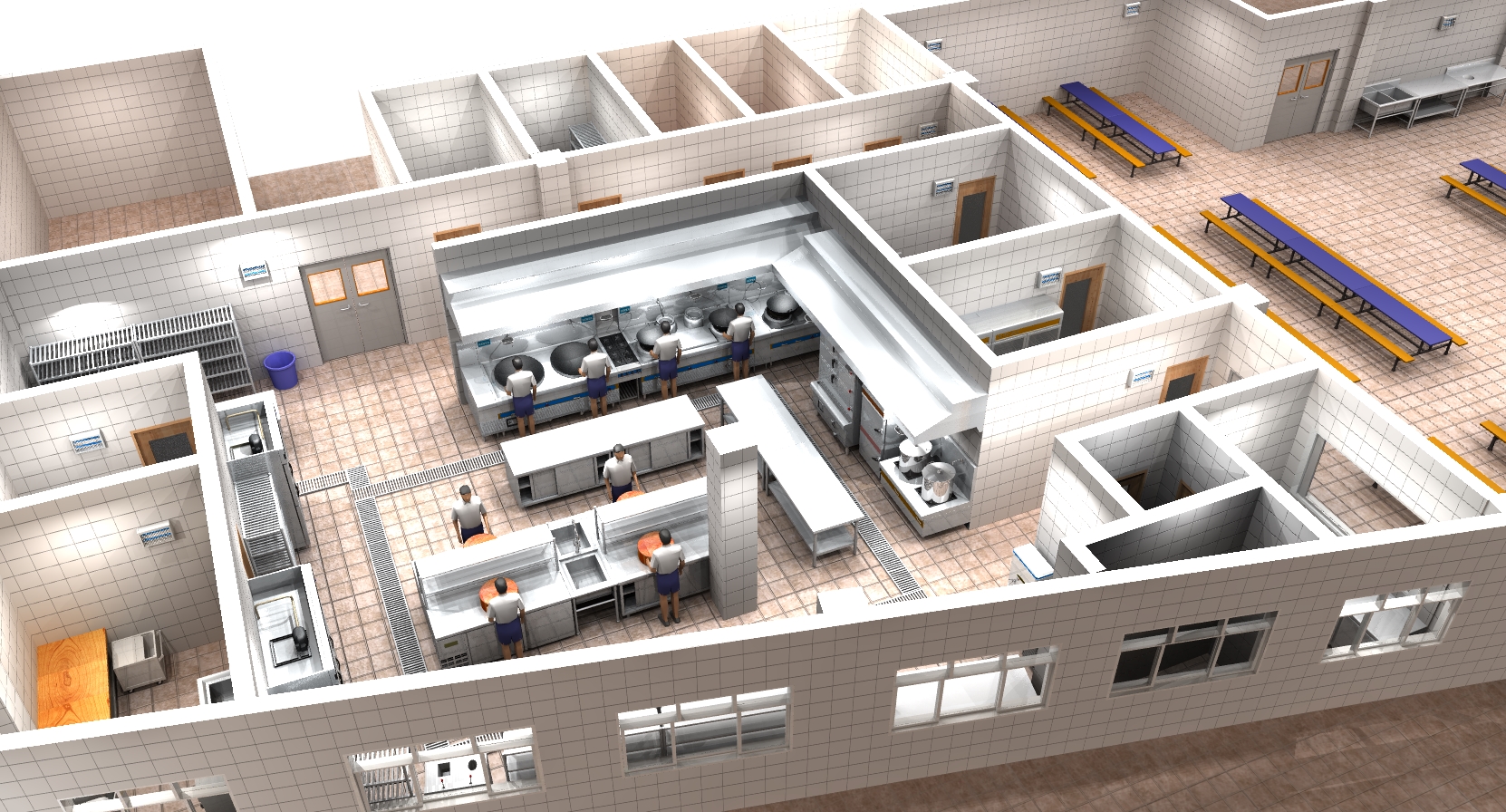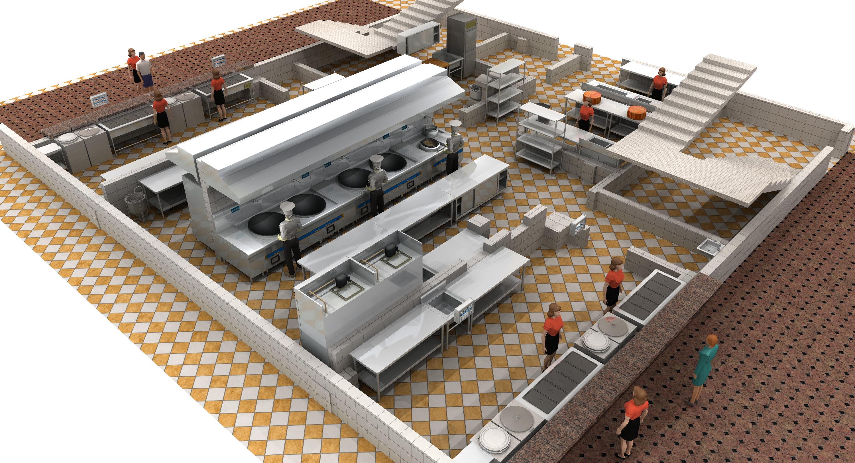 我們可根據(jù)客戶的各種需求,廚房的具體環(huán)境,嚴格遵循消防、衛(wèi)生及環(huán)保規(guī)定,為客戶設(shè)計一個最佳布局方案和最優(yōu)化的設(shè)備選配,使設(shè)備能充分發(fā)揮其功能,達到實用、方便、衛(wèi)生、美觀的效果。 同時提供合理的廚房設(shè)備布局平面圖,相應(yīng)的給、排水圖,電路配置圖,排送風系統(tǒng)工程圖。